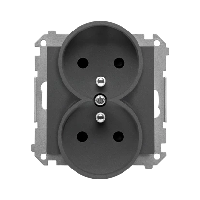SIMON 55 MODUL GRAFITOWY MAT GNIAZDO WTYCZKOWE PODWÓJNE Z UZIEMIENIEM Z PRZESŁONAMI SZYBKOZŁĄCZA