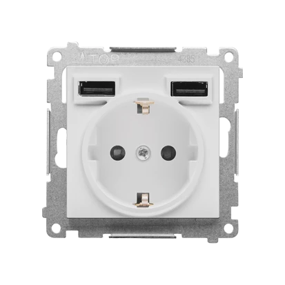 Gniazdo schuko ze zintegrowaną ładowarką 2xUSB A (moduł): Jasnoszary mat, SIMON55 o numerze katalogowym   TGSZ1ZUSB2AA.01/114 w kategorii Gniazda instalacyjne>Gniazda podtynkowe. Produkt wyprodukowany przez markę KONTAKT-SIMON, seria SIMON 55.