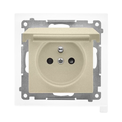 SIMON 55 MODUŁ SZAMPAŃSKI MAT GNIAZDO 1X Z/U Z KLAPKĄ IP44 ZACISKI SPRĘŻYNOWE 16A 250V