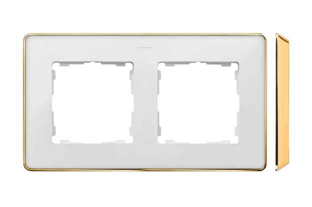Ramka 2-krotna, Detail SELECT-metal, BIAŁA / podstawa Złota, SIMON82 DETAIL o numerze katalogowym 8201620-245 w kategorii Ramki, Ramki, klawisze, plakietki. Produkt wyprodukowany przez markę KONTAKT-SIMON, seria SIMON 82 DETAIL.