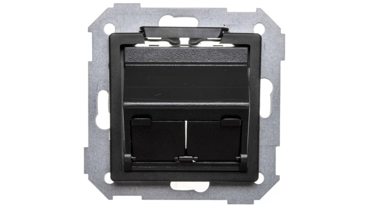 Pokrywa gniazda RJ45 x2 skośna, grafit Simon 82 o numerze katalogowym 82579-38 w kategorii Plakietki, Ramki, klawisze, plakietki. Produkt wyprodukowany przez markę KONTAKT-SIMON, seria SIMON 82.