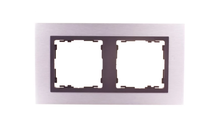 Ramka 2-krotna Nature-metal, Inox mat / pierścień grafit, SIMON82 NATURE o numerze katalogowym 82827-31 w kategorii Ramki, Ramki, klawisze, plakietki. Produkt wyprodukowany przez markę KONTAKT-SIMON, seria SIMON 82 NATURE.