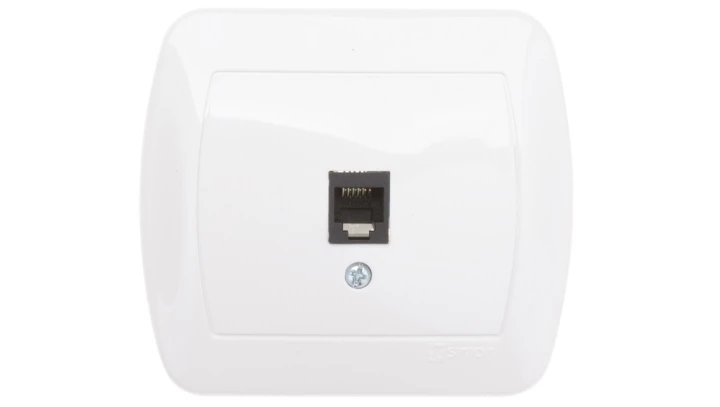 Simon 54 Gniazdo komputerowe pojedyncze RJ45 kat.6 z przesłoną białe D61.01/11