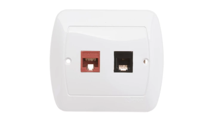 Gniazdo komputerowe RJ45 + telefoniczne RJ11 AF5T/11 Akord biały o numerze katalogowym AF5T/11 w kategorii Gniazda teleinformacyjne, multimedialne, Łączniki i gniazda instalacyjne. Produkt wyprodukowany przez markę KONTAKT-SIMON, seria AKORD.