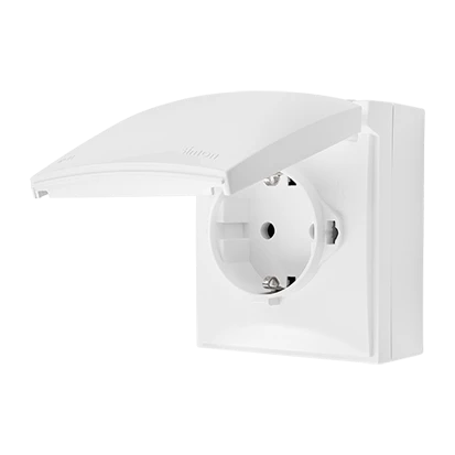 SIMON AQUACLICK BIAŁY GNIAZDO NT 1X Z/U SCHUKO Z KLAPĄ Z PRZESŁ. TORÓW PRĄD. IP44 ZACIS. SPRĘŻYNOWE