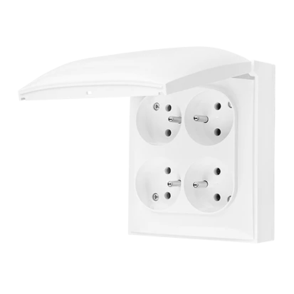 Gniazdo wtyczkowe natynkowe, 4-krotne z uziemieniem, klapka w kolorze pokrywy, z przesł. torów prąd., IP44, 16 A, 250 V~, zaciski śrubowe, biały, AQUACLICK o numerze katalogowym ACGZ4Z/11 w kategorii Gniazda natynkowe, Gniazda instalacyjne. Produkt wyprodukowany przez markę KONTAKT-SIMON, seria AQUACLICK.