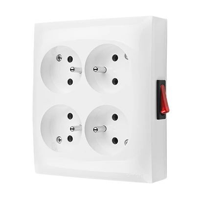 Gniazdo wtyczkowe natynkowe, 4-krotne z uziemieniem, z wbudowanym wyłącznikiem, IP20, 16 A, 250 V~, zaciski śrubowe, biały, AQUACLICK o numerze katalogowym ACGZN4W1/11 w kategorii Gniazda natynkowe, Gniazda instalacyjne. Produkt wyprodukowany przez markę KONTAKT-SIMON, seria AQUACLICK.
