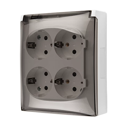SIMON AQUACLICK BIAŁY GNIAZDO NT 4X Z/U SCHUKO Z KLAPĄ IP44 ZACISKI ŚRUBOWE 16A 250V