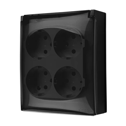 Gniazdo wtyczkowe natynkowe, Schuko, 4-krotne, klapka transparentna, IP44, 16 A, 250 V~, zaciski śrubowe, czarny, AQUACLICK o numerze katalogowym ACGSZ4/49A w kategorii Gniazda natynkowe, Gniazda instalacyjne. Produkt wyprodukowany przez markę KONTAKT-SIMON, seria AQUACLICK.