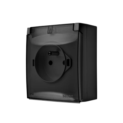 Simon 54 Gniazdo bryzgoszczelne z/u IP44 z klapką transparentną antracyt DGZ1BZ.01/48A