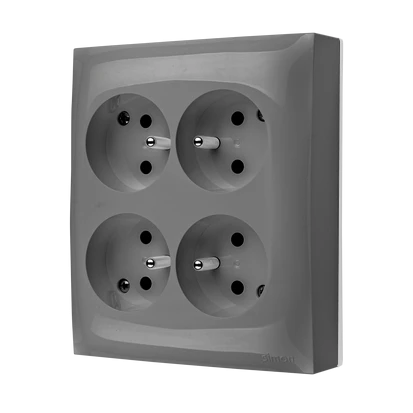 Simon Aquaclick Gniazdo IP20, 4-krotne z uziem. szary ACGZN4/16