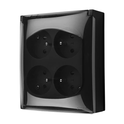 Simon Aquaclick Gniazdo IP44, 4-krotne z uziem., klapka transparentna czarny ACGZ4/49A
