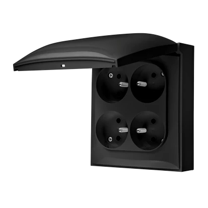 Simon Aquaclick Gniazdo IP44, 4-krotne z uziem., klapka w kolorze czarny ACGZ4/49