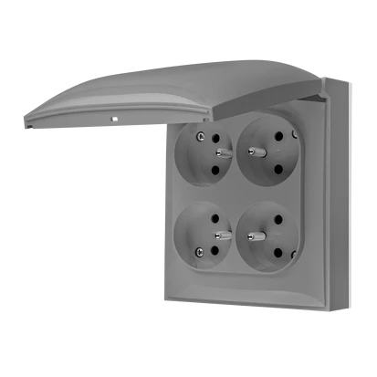 Simon Aquaclick Gniazdo IP44, 4-krotne z uziem., klapka w kolorze szary ACGZ4/16