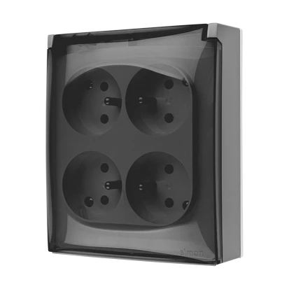 Simon Aquaclick Gniazdo IP44, 4-krotne z uziem., szybkozłącza, klapka transparentna szary ACGZ4C/16A