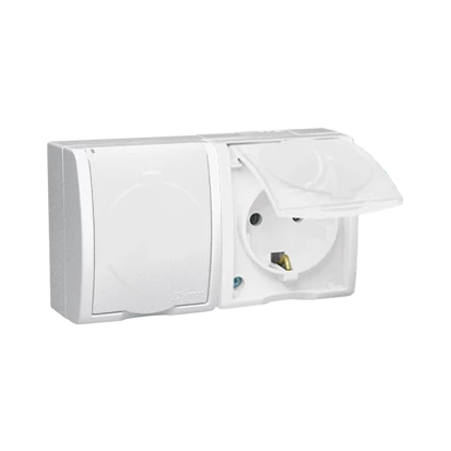 HYDRO Gniazdo hermetyczne podwójne z/u IP44 z klapką białe 120436