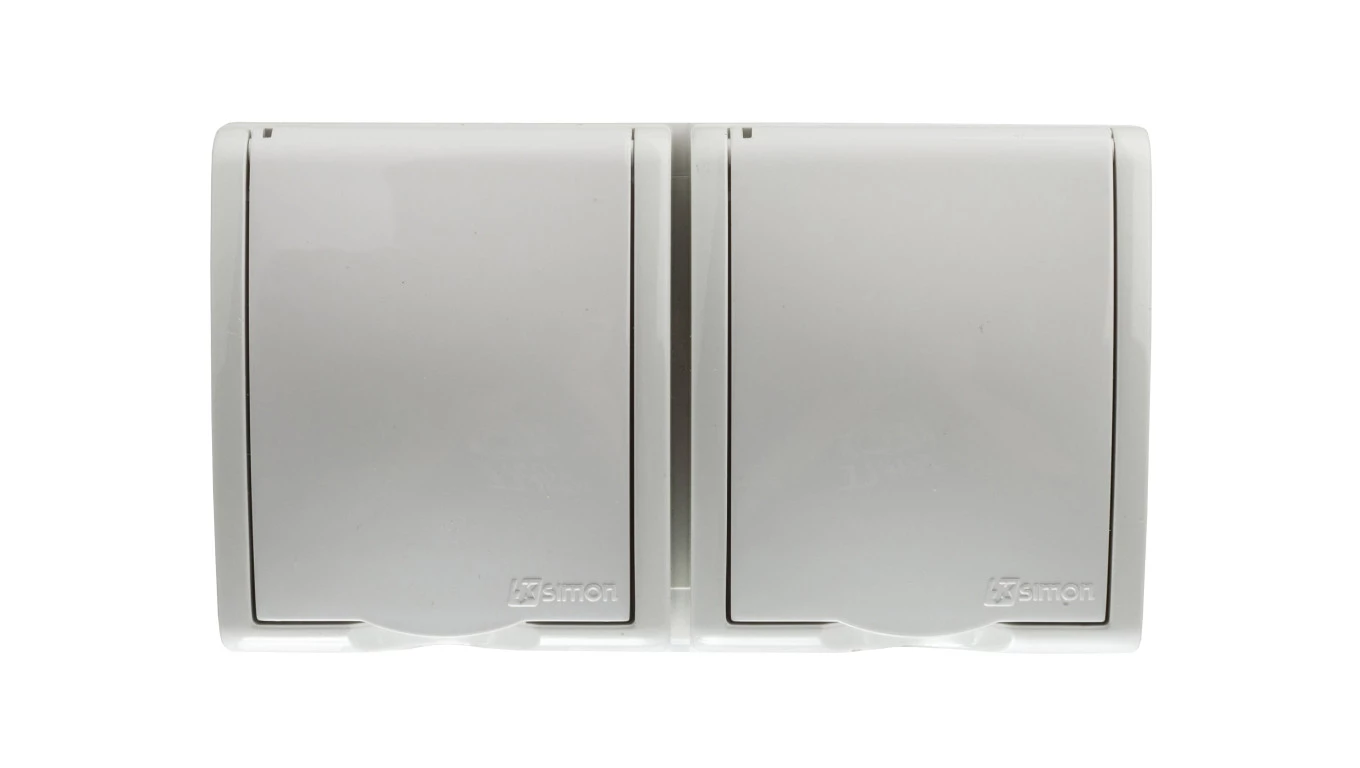 SIMON AQUARIUS BIAŁY GNIAZDO NT 2X Z/U Z KLAPKĄ IP54 Z PRZESŁONAMI ZACISKI ŚRUBOWE 16A 250V