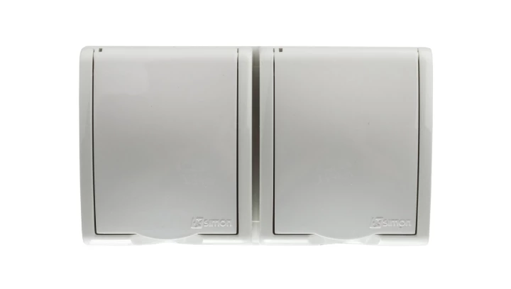 Gniazdo z uziemnieniem 2-krotne n/t IP54 z przesłonami AQGZ1-2Z/11 Aquarius biały o numerze katalogowym AQGZ1-2Z/11 w kategorii Gniazda natynkowe, Gniazda instalacyjne. Produkt wyprodukowany przez markę KONTAKT-SIMON, seria AQUARIUS.
