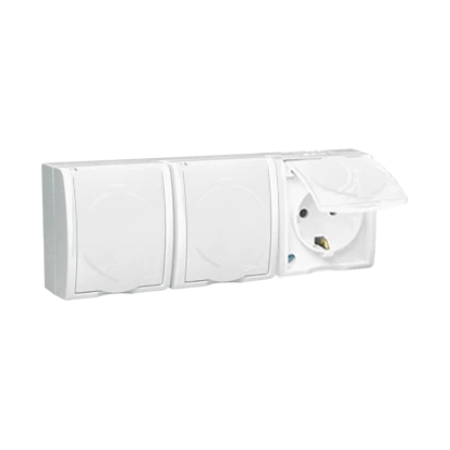 SIMON AQUARIUS BIAŁY GNIAZDO NT 3X SCHUKO Z KLAPKĄ BIAŁĄ IP54 ZACISKI ŚRUBOWE 16A 250V