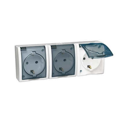 SIMON AQUARIUS BIAŁY GNIAZDO NT 3X SCHUKO Z KLAPKĄ TRANSPARENTNĄ IP54 ZACISKI ŚRUBOWE 16A 250V