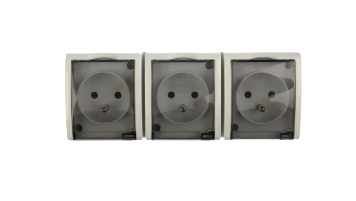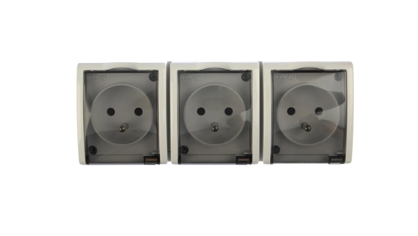Gniazdo z uziemnieniem 3-krotne n/t IP54 AQGZ1-3/11a Aquarius biały, klapka dymna o numerze katalogowym AQGZ1-3/11A w kategorii Gniazda natynkowe, Gniazda instalacyjne. Produkt wyprodukowany przez markę KONTAKT-SIMON, seria AQUARIUS.