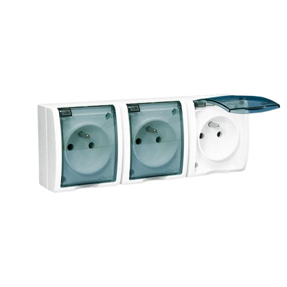 Simon Aquarius Gniazdo hermetyczne potrójne z/u IP54 z przesłona torów i klapką transparentną AQGZ1-3Z/11