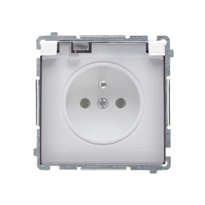 Gniazdo z uziemnieniem pojedyncze IP44 kl.dymna z przesłonami BMGZ1BZ.01/11a Basic moduł biały o numerze katalogowym BMGZ1BZ.01/11A w kategorii Gniazda podtynkowe, Gniazda instalacyjne. Produkt wyprodukowany przez markę KONTAKT-SIMON, seria BASIC MODUŁ.