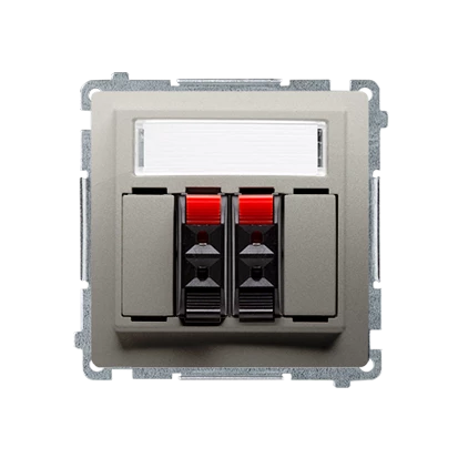 Gniazdo głośnikowe 2-krotne z polem opisowym (moduł). Przekrój przew.dla wejścia i wyjścia 2,5 mm2. Mocowanie na łapki i wkręty, satynowy, BASIC MODUŁ o numerze katalogowym BMGL3.01/29 w kategorii Gniazda głośnikowe, Łączniki i gniazda instalacyjne. Produkt wyprodukowany przez markę KONTAKT-SIMON, seria BASIC MODUŁ.