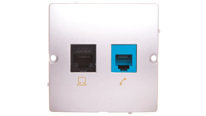 Simon Basic Gniazdo komputerowe RJ45 kat.5e + telefoniczne RJ12 srebrny m