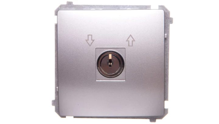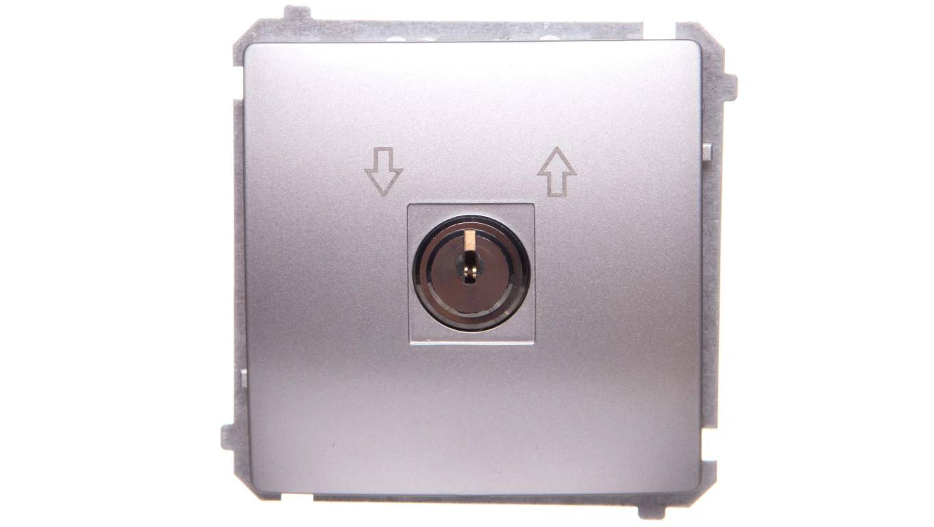 Łącznik chwilowy roletowy z kluczem, 3 pozycyjny, I-0-II" 2 styki N/O. Możliwość wyjęcia klucza tylko w pozycji 0, srebrny mat, BASIC MODUŁ o numerze katalogowym BMPZK.01/43 w kategorii Łączniki pozostałe, akcesoria podtynkowe, Łączniki i gniazda instalacyjne. Produkt wyprodukowany przez markę KONTAKT-SIMON, seria BASIC MODUŁ.