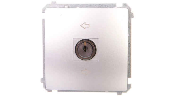 Łącznik roletowy z kluczem, 3 pozycyjny, I-0-II 2 styki N/O. Możliwość wyjęcia klucza w każdej pozycji, srebrny mat, BASIC MODUŁ o numerze katalogowym BMWZK.01/43 w kategorii Łączniki podtynkowe jednobiegunowe, Łączniki jednobiegunowe. Produkt wyprodukowany przez markę KONTAKT-SIMON, seria BASIC MODUŁ.