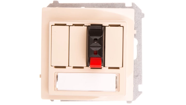 Gniazdo głośnikowe 1-krotne z polem opisowym (moduł). Przekrój przew. dla wejścia i wyjścia 2,5 mm2. Mocowanie na łapki i wkręty, beż, BASIC MODUŁ o numerze katalogowym BMGL31.01/12 w kategorii Gniazda głośnikowe, Łączniki i gniazda instalacyjne. Produkt wyprodukowany przez markę KONTAKT-SIMON, seria BASIC MODUŁ.