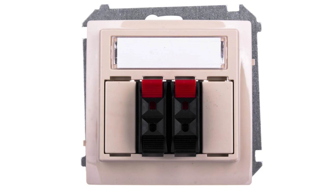 Gniazdo głośnikowe 2-krotne z polem opisowym (moduł), Mocowanie na łapki i wkręty beż BASIC MODUŁ o numerze katalogowym BMGL3.01/12 w kategorii Gniazda głośnikowe, Łączniki i gniazda instalacyjne. Produkt wyprodukowany przez markę KONTAKT-SIMON, seria BASIC MODUŁ.
