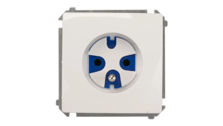 Simon 54 Gniazdo pojedyncze SCHUKO z/u 16A IP20 z przesłoną torów, szybkozłącza, białe DGSz1CZ.01/11