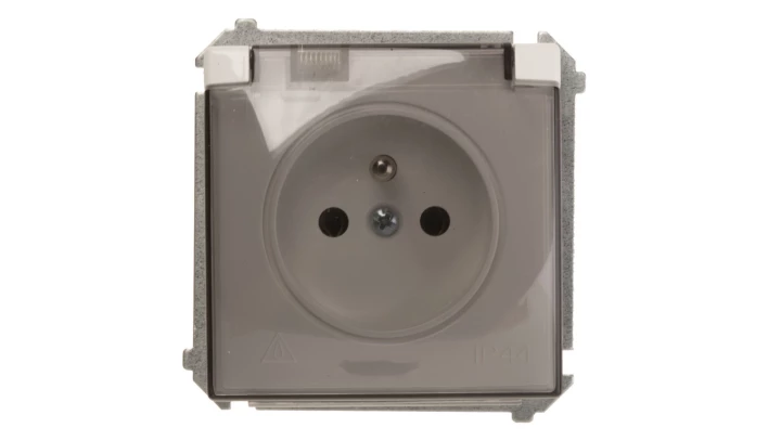 Simon 54 Gniazdo bryzgoszczelne z/u IP44 z klapką transparentną antracyt DGZ1BZ.01/48A