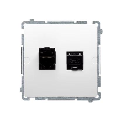 Simon 54 Gniazdo komputerowe podwójne 2xRJ45 kat.6 z przesłoną białe D62.01/11