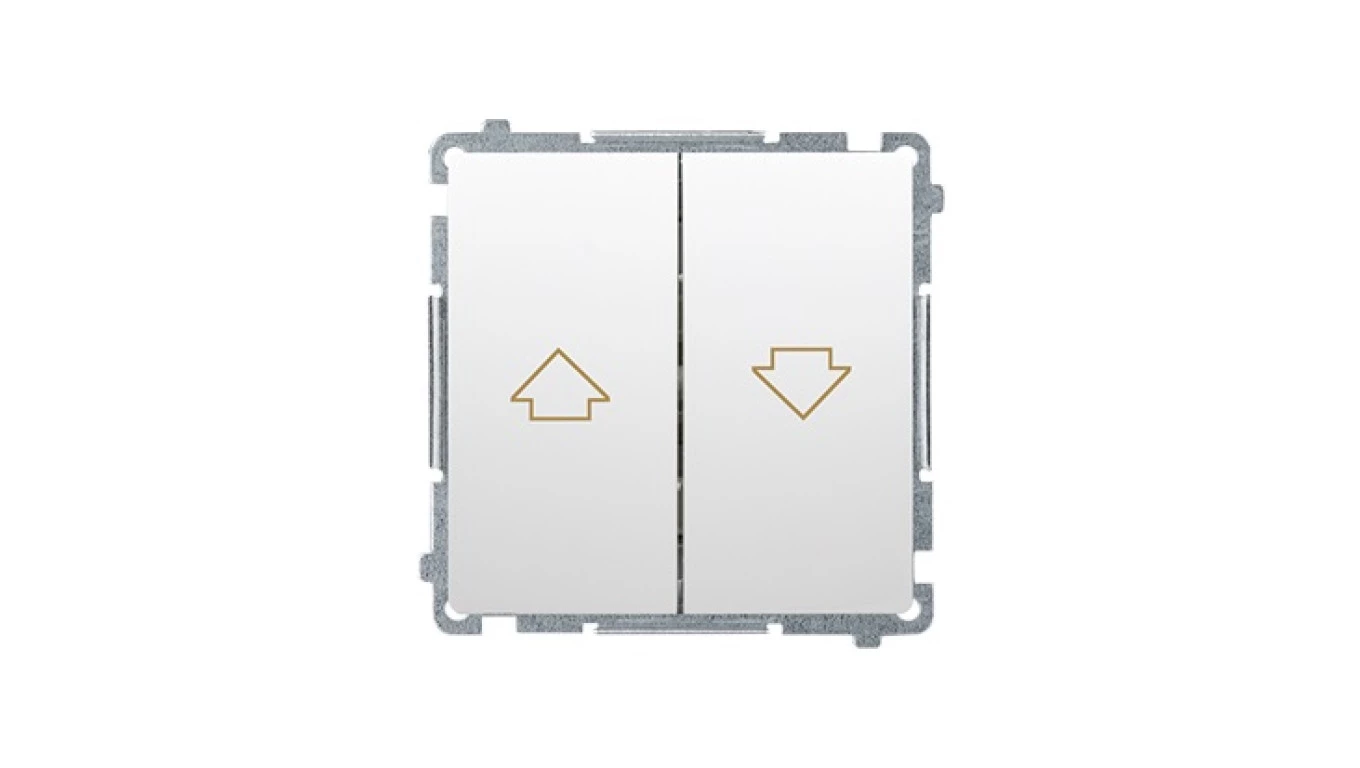 SIMON BASIC MODUŁ BIAŁY PRZYCISK ŻALUZJOWY 2X "STRZAŁKA" ZACISKI ŚRUBOWE 10AX 250V