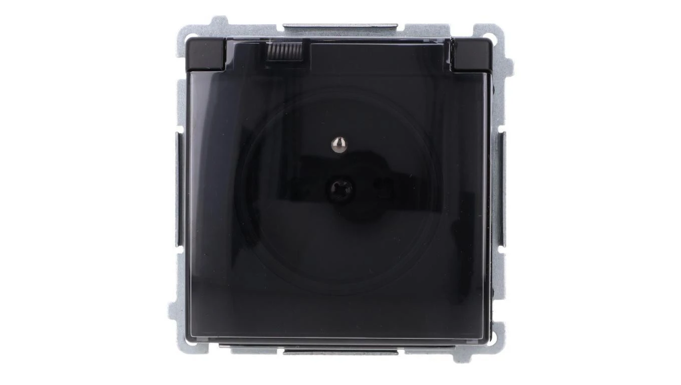 SIMON BASIC MODUŁ CZARNY MAT GNIAZDO 1X Z/U Z KLAPKĄ DYMNĄ IP44 Z PRZESŁONAMI ŚRUBOWE 16A 250V