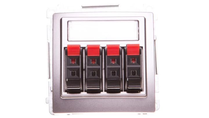 Gniazdo głośnikowe 4-krotne z polem opisowym (moduł). Do podłączenia 4 kolumn głośnikowych. Mocowanie gniazda na łapki i wkręty, stal inox, BASIC MODUŁ o numerze katalogowym BMGL34.01/21 w kategorii Gniazda głośnikowe, Łączniki i gniazda instalacyjne. Produkt wyprodukowany przez markę KONTAKT-SIMON, seria BASIC MODUŁ.