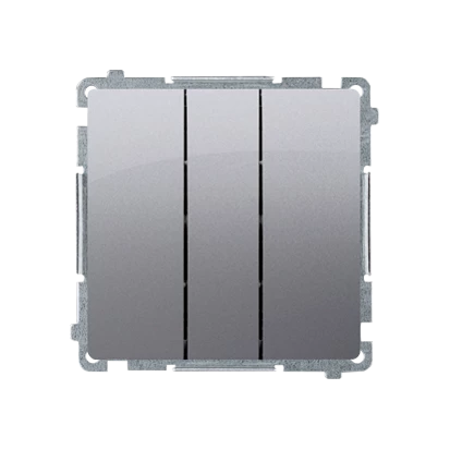 Przycisk potrójny (moduł) 10AX, 250V~, szybkozłącza, stal inox, BASIC MODUŁ o numerze katalogowym BMP31.01/21 w kategorii Przyciski podtynkowe wielubiegunowe, Przyciski wielobiegunowe. Produkt wyprodukowany przez markę KONTAKT-SIMON, seria BASIC MODUŁ.