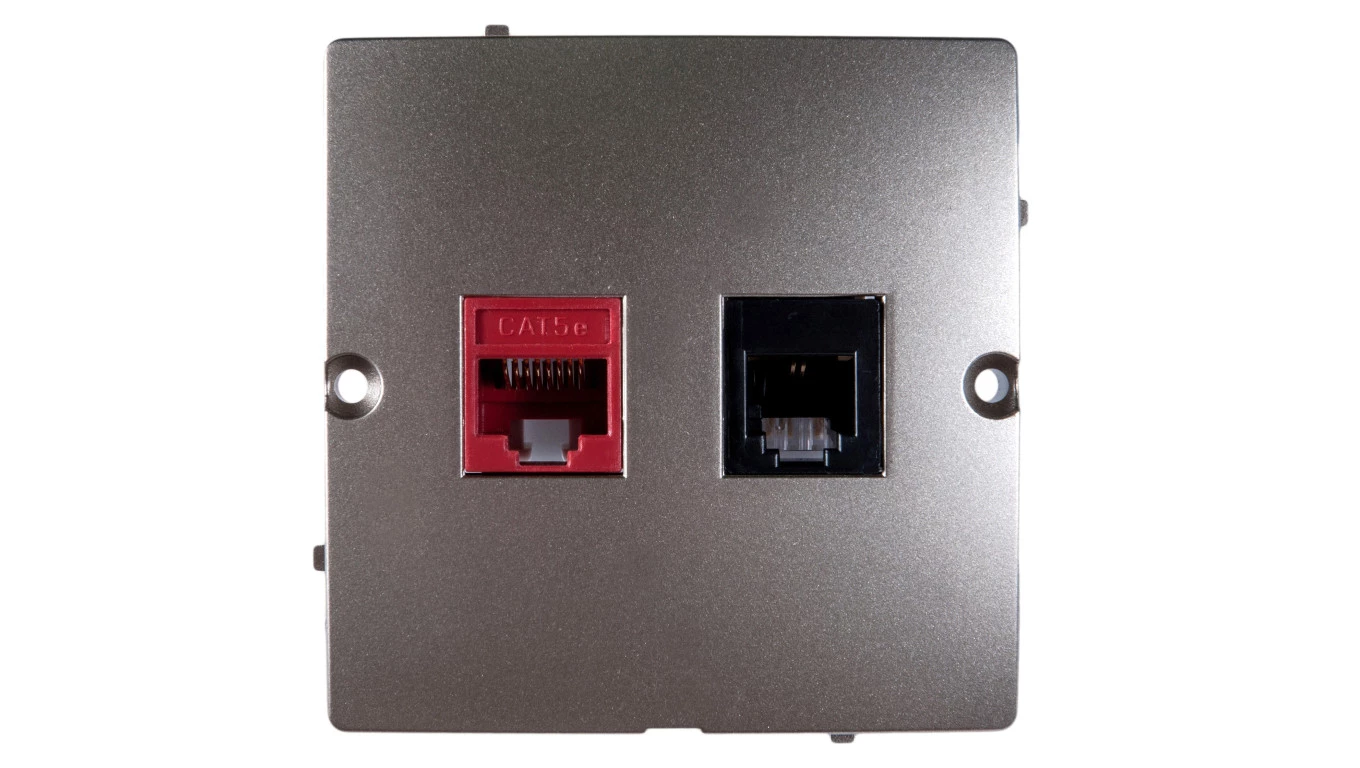 Gniazdo komputerowe RJ45 kat.5e + telefoniczne RJ11 (moduł), Basic moduł satynowy o numerze katalogowym BMF5T.02/29 w kategorii Gniazda teleinformacyjne, multimedialne, Łączniki i gniazda instalacyjne. Produkt wyprodukowany przez markę KONTAKT-SIMON, seria BASIC MODUŁ.
