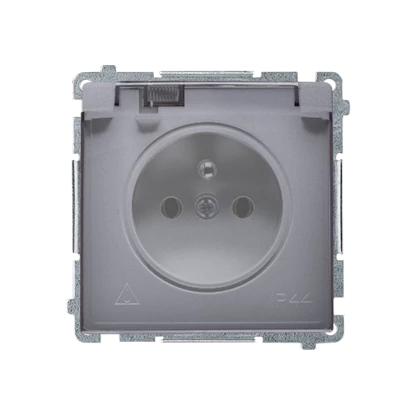SIMON BASIC MODUŁ SREBRNY MAT GNIAZDO 1X Z/U Z KLAPKĄ DYMNĄ IP44 Z PRZESŁONAMI ŚRUBOWE 16A 250V