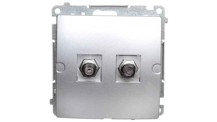 Gniazdo antenowe typu "F" podwójne (moduł), Basic moduł srebrny mat o numerze katalogowym BMAF2.01/43 w kategorii Gniazda teleinformacyjne, multimedialne, Łączniki i gniazda instalacyjne. Produkt wyprodukowany przez markę KONTAKT-SIMON, seria BASIC MODUŁ.