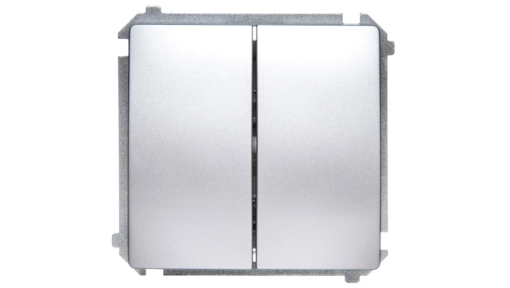 SIMON BASIC MODUŁ SREBRNY MAT ŁĄCZNIK SERYJNY PODŚWIETLANY NIEBIESKI ZACISKI SPRĘŻYNOWE 10AX 250V