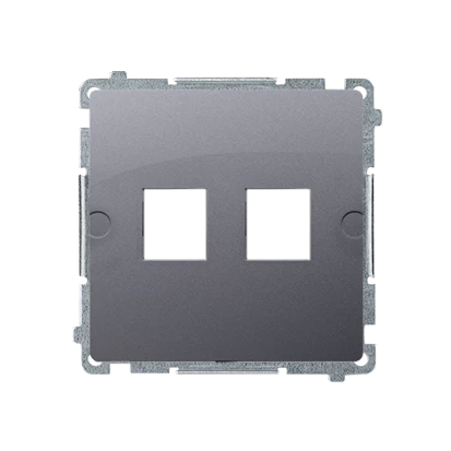 Pokrywa gniazd teleinformatycznych na Keystone płaska podwójna. Montaż na łapki lub wkręty, srebrny mat, BASIC MODUŁ o numerze katalogowym BMPT/43 w kategorii Plakietki, Ramki, klawisze, plakietki. Produkt wyprodukowany przez markę KONTAKT-SIMON, seria BASIC MODUŁ.