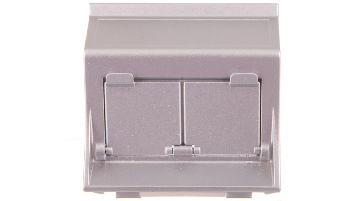 Płytka S500, 2x RJ z osłonami skośna, do adapterów MD, aluminium, SIMON500 o numerze katalogowym 50000086-033 w kategorii Płytki modułowe systemu 45X45, Osprzęt biurowy, akcesoria. Produkt wyprodukowany przez markę KONTAKT-SIMON, seria SIMON 500.