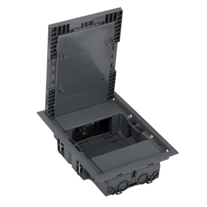 Puszka podłogowa 4-krotna K45 + 2-krotna K45/2, montaż modułów kątowy, szary o numerze katalogowym KF200/1 w kategorii Puszki podłogowe, Puszki instalacyjne. Produkt wyprodukowany przez markę KONTAKT-SIMON, seria CONNECT.