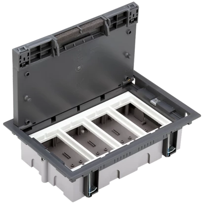Puszka podłogowa 4-modułowa, 8x K45, gł. 70mm + SM402/9, szary Connect o numerze katalogowym SF470/1 w kategorii Puszki podłogowe, Puszki instalacyjne. Produkt wyprodukowany przez markę KONTAKT-SIMON, seria CONNECT.