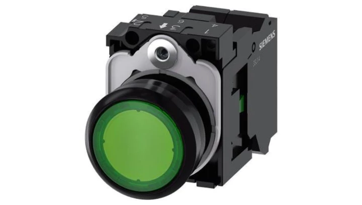 SIRIUS ACT PRZYCISK PODŚWIETLANY MONOSTABILNY 1NO 24V AC/DC Z UCHWYTEM ZACISKI SPRĘŻYNOWE ZIELONY