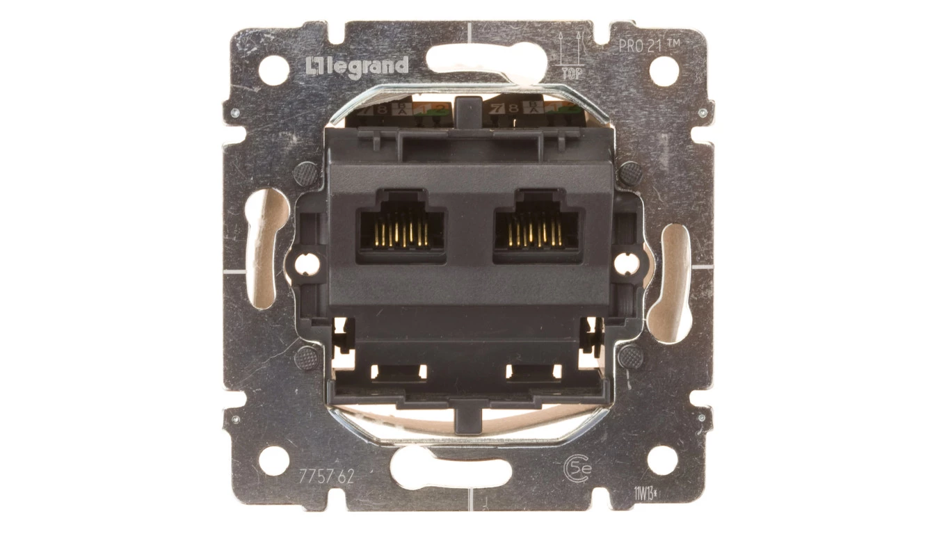 Simon 54 Gniazdo komputerowe podwójne 2xRJ45 kat.6 z przesłoną antracyt D62.01/48
